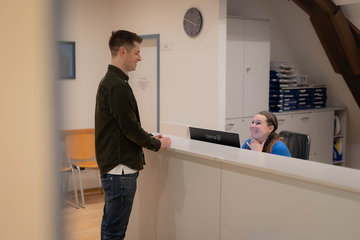 Nicht nur die frisch renovierten Behandlungsräume und die offenen Deckenbalken des historischen Gebäudes machen die Praxis in der Ingolstädter Altstadt zu einem besonderen Ort. Auch die freundliche Atmosphäre, das offene Ohr des Praxisteams für individuelle Anliegen und die persönliche Betreuung tragen dazu bei, dass sich Patientinnen und Patienten wohlfühlen. Dank der zentralen Lage ist die Praxis bequem erreichbar: Parkmöglichkeiten befinden sich direkt an der Harderstraße oder am Volksfestplatz. Der Zentrale Omnibusbahnhof liegt nur drei bis fünf Gehminuten entfernt. Ein modernes Terminmanagement sorgt dafür, Wartezeiten zu minimieren und unnötige Praxisbesuche zu vermeiden. Termine lassen sich unkompliziert online vereinbaren. Auch Folgerezepte können bequem digital bestellt werden – vorausgesetzt, die Krankenkassenkarte wurde im laufenden Quartal bereits eingelesen. Das bedeutet: weniger Aufwand, mehr Komfort und mehr Zeit für das Wesentliche – die optimale medizinische